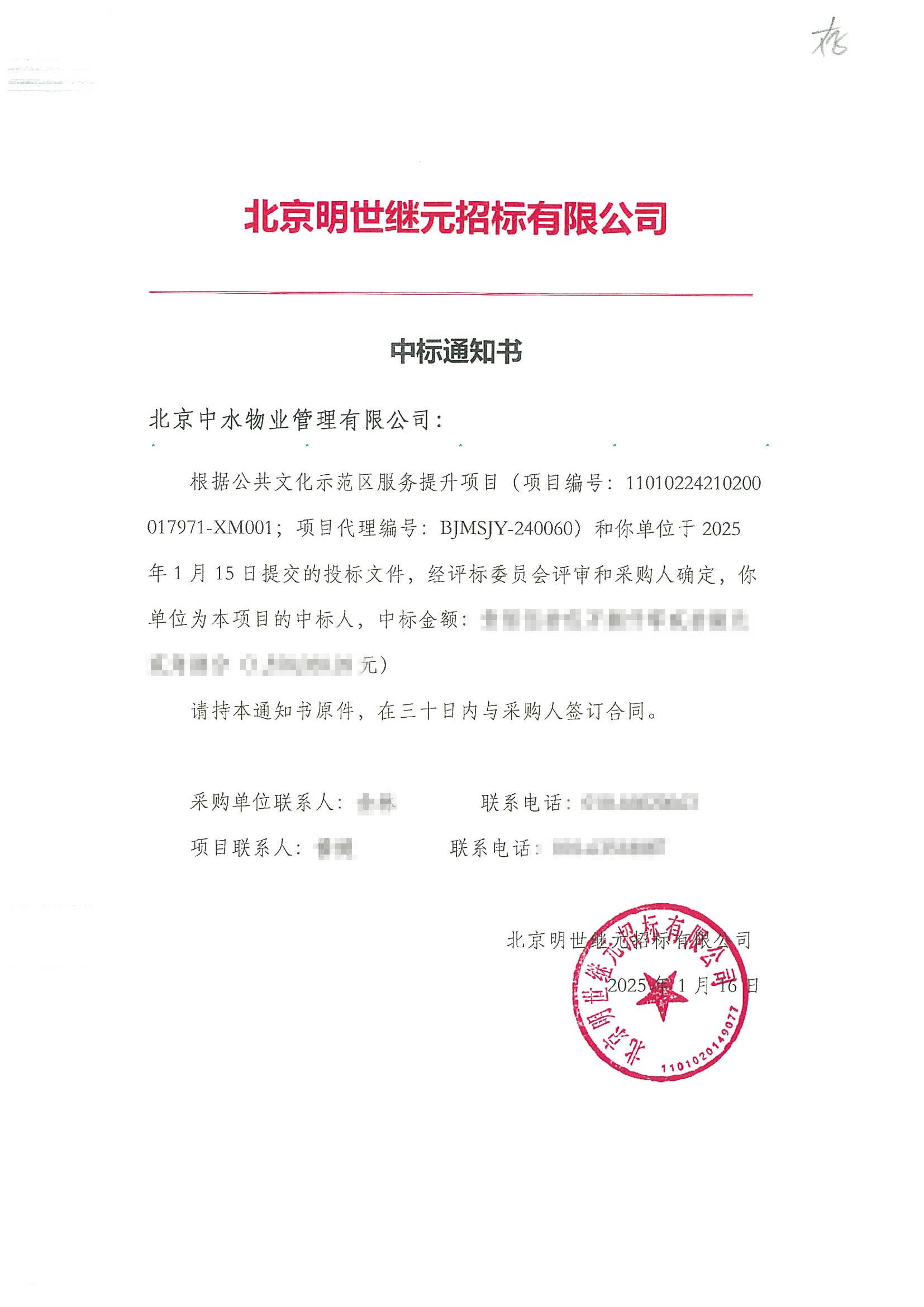 中水物业成功中标公共文化示范区服务提升物业管理服务项目