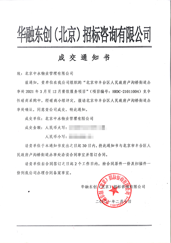 北京市丰台区人民政府卢沟桥街道办事处餐饮服务项目成功中标
