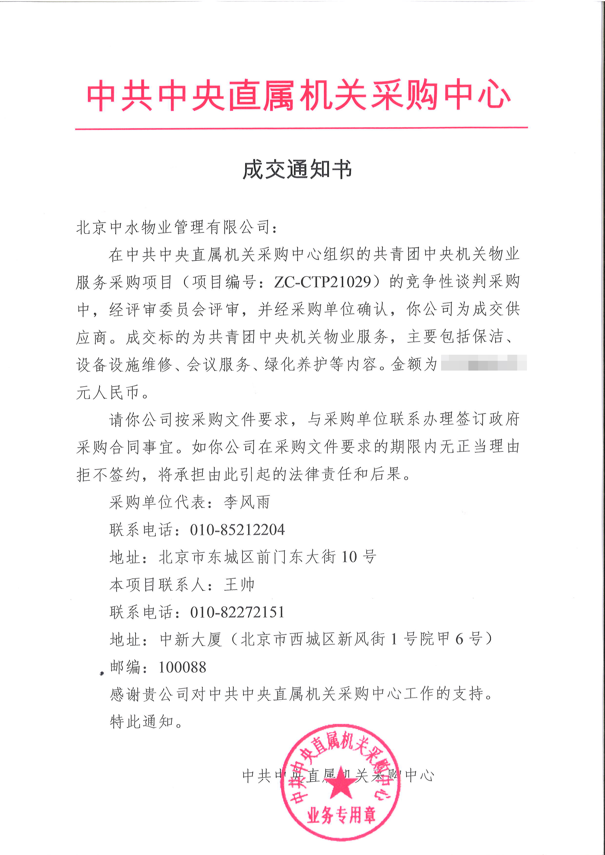 共青团中央机关物业服务采购项目成功中标
