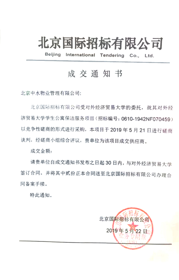 对外经济贸易大学学生公寓保洁服务项目成功中标