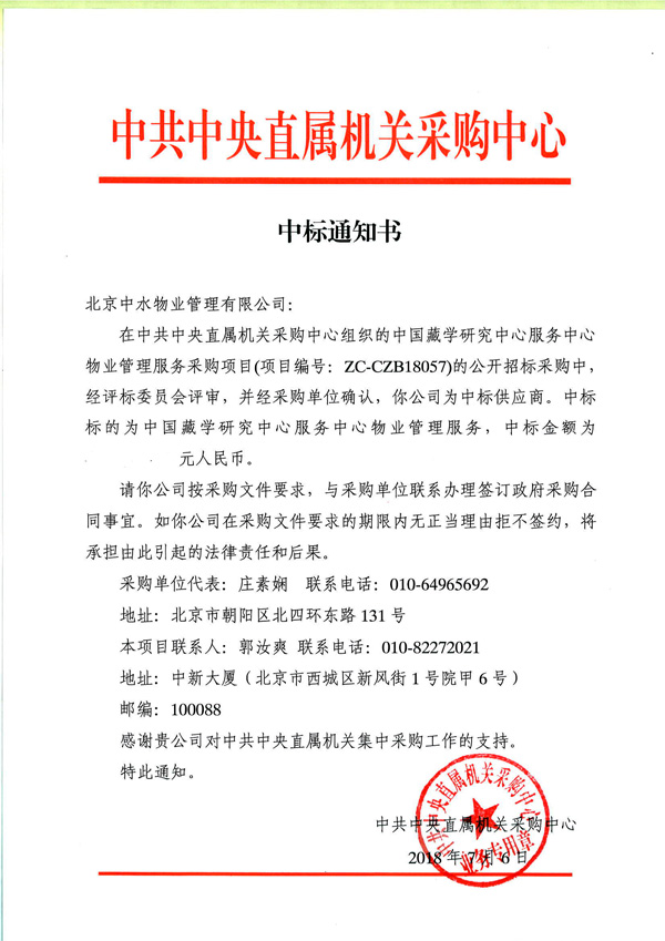 中国藏学研究中心服务中心物业管理服务采购项目成功中标