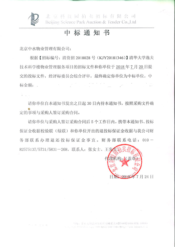 清华大学逸夫技术科学楼物业管理服务项目成功中标