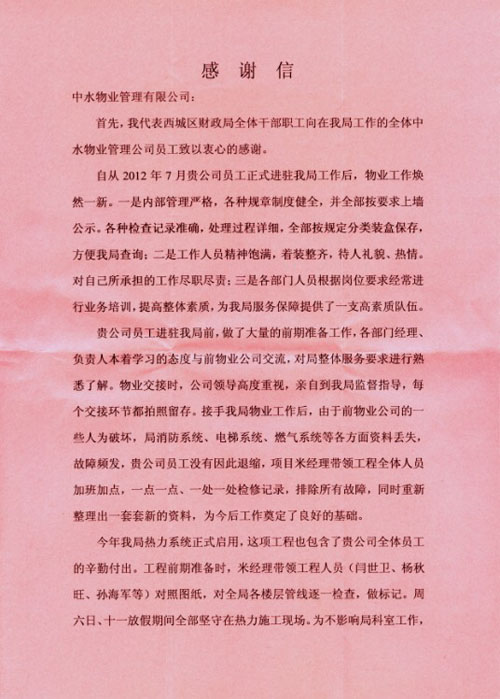 简讯:北京市西城区财政局发来感谢信